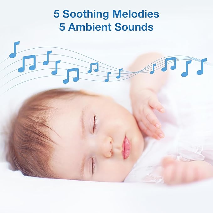 - Soothing Sounds and Lullabies- Gently lull your baby to sleep with 5 calming melodies and 4 sets of ambient sound, including white noise and a trickling stream.
