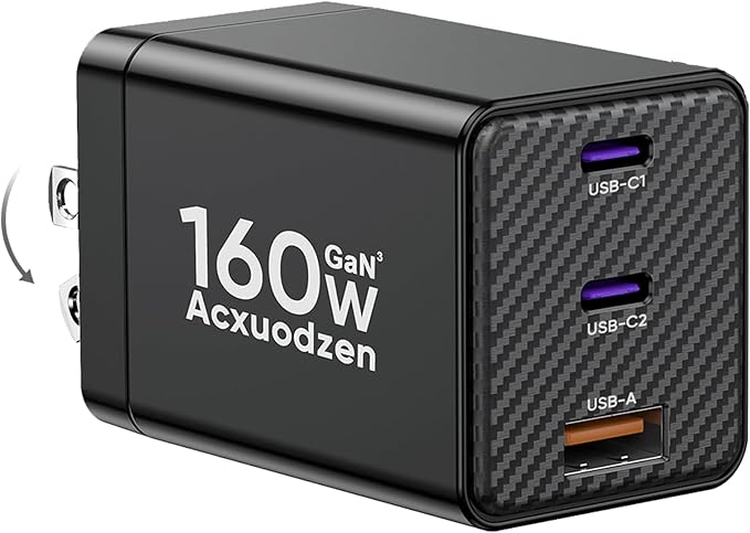 - 【3-IN-1 USB C Charger Block】: Acxuodzen 3-port usb c charger block with dual 65W type c charging ports & one 30W USB-A charging port(160W Total). The 65W high power charging port can charge your laptop fast and also provide super fast charge for your phone, iPad, iWatch, Switch and other electronic devices. Faster charging speed than regular 20W/30W/40w/45W chargers, greatly shortens your charging time. Our 1 charger block equivalent to 3 single-port charger blocks, can save your outlet space.