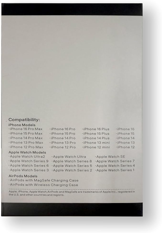 - Compatible Phone Models : iPhone 17/16/15/14/13/12 Series, Apple Watch Ultra 3/Ultra 2/Ultra Series SE3 SE2 SE 11/10/9/8/7/6/5/4/3/2/1, AirPods Pro 3/2/1, AirPods 4/3/2 iPhone 17/16/15/14/13/12 Series, Apple Watch Ultra 3/Ultra 2/Ultra Series SE3 SE2 SE 11/10/9/8/7/6/5/4/3/2/1, AirPods Pro 3/2/1, AirPods 4/3/2