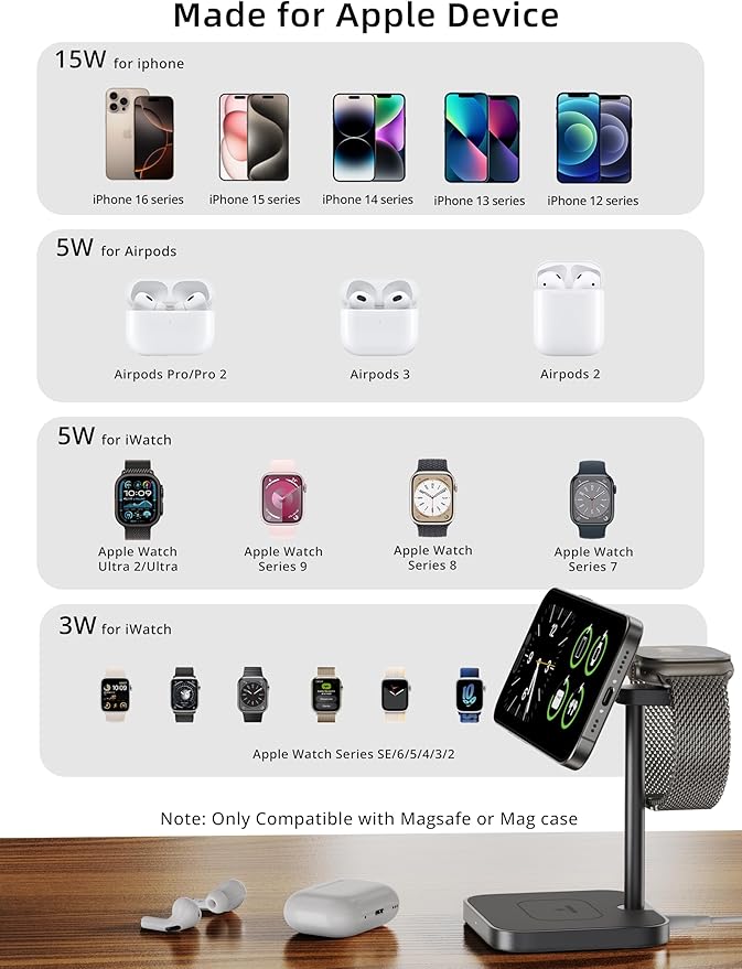- Compatible Devices : iPhone 17/16/15/14/13/12 Series, Apple Watch Ultra 3/Ultra 2/Ultra Series SE3 SE2 SE 11/10/9/8/7/6/5/4/3/2/1, AirPods Pro 3/2/1, AirPods 4/3/2 iPhone 17/16/15/14/13/12 Series, Apple Watch Ultra 3/Ultra 2/Ultra Series SE3 SE2 SE 11/10/9/8/7/6/5/4/3/2/1, AirPods Pro 3/2/1, AirPods 4/3/2