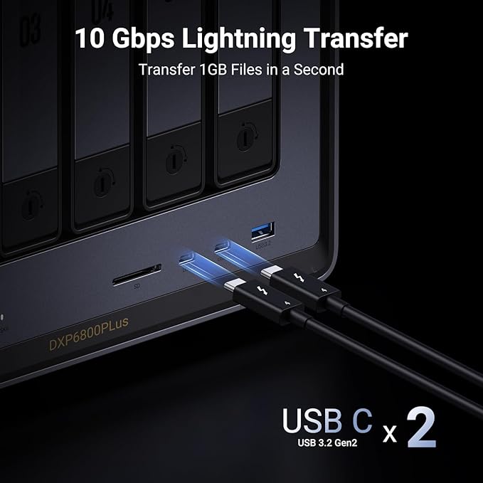 - 1*10GbE & 1*2.5GbE Network Ports: 10GbE high-speed network ports that can be aggregated into 20G bandwidth for download speeds of up to 1250MB/s. Transfer large files smoothly like a breeze. Load between the two port links can be dynamically adjusted and balanced to improve transmission efficiency.