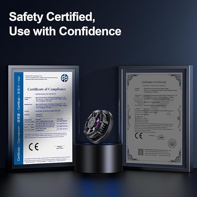 - 【Compact & Lightweight Design】This cooling wireless charger weighs only 8.87g, making it exceptionally small and portable — an ideal choice for on-the-go cooling. It’s easy to carry, leaves more room for handheld use, and adds virtually no extra burden.
